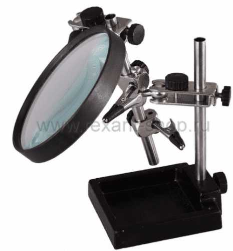 В нашем магазине «Главэлектрика» в Хабаровске, вы можете приобрести товар: «Держатель "третья рука" с лупой х3, D=60 мм. (ZD-10H) REXANT» с доставкой по г. Хабаровск.