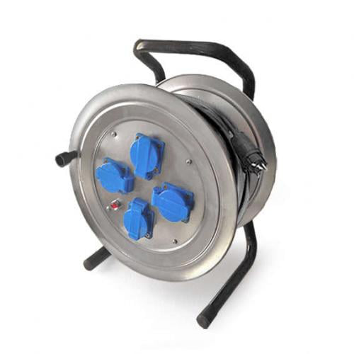 Силовой удлинитель на металлической катушке 4 гн. 50м Союз 481S-4005 предназначен для работы с различными электроприборами на удаленном расстоянии от электросети. Металлическая катушка и стальная стойка с порошковым покрытием позволяют использовать изделие в тяжелых условиях, например: в промышленности, на строительных площадках и пр. Гнезда на лицевой панели защищены от попадания брызг за счет специальных крышек.