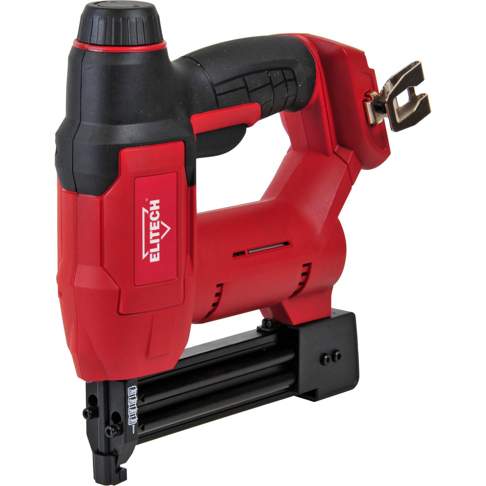 Аккумуляторный степлер Elitech ПГА 1832Л ( E2210.001.00) применяется в сфере изготовления мебели, в хенд-мейде, а также в ремонте и отделке для крепления тонких деревянных и рулонных заготовок с помощью скоб или гвоздей. Одинаково хорош в быту и профессиональном использовании. Работает от литий-ионных батарей на 18В. Относительно небольшой вес делает процесс более комфортным, что позволяет долго работать без усталости. Можно забивать не только скобы, но и гвозди - фактически объединены два инструмента в одном. Есть возможность подвешивать степлер за ремень.