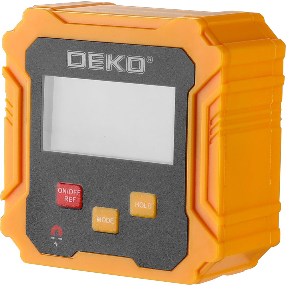 Цифровой угломер DEKODKAM01предназначен для того, чтобы быстро и точно определить угол отклонения поверхности от горизонтали или вертикали. Дополнительные характеристики: Диапазон измерений: 4x90° Шаг: 0,05° Точность измерения: ±0.2° Питание: 1 батарейка типа ААА 1,5В (не входит в комплект) Подсветка: да Функция автоматического выключения: да Магнитное основание: да