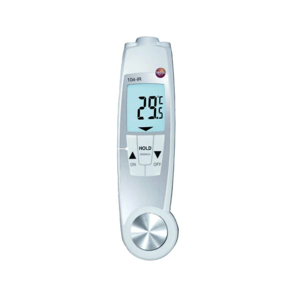Проникающий водонепроницаемый ИК-термометр Testo 104-IR 0560 1040 предназначен для проникающего и инфракрасного измерения температуры. Подходит для применения практически во всех областях пищевого сектора. С помощью его можно просканировать температуру отдельных продуктов или целых упаковок бесконтактным способом, например, в процессе приемки продукции. Температура продуктов питания является определяющим фактором в вопросах роста и распространения микроорганизмов, а, значит, непосредственно влияет на качество продуктов и здоровье потребителей. В случае превышения заданных предельных значений можно воспользоваться проникающим зондом и дополнительно проверить внутреннюю температуру продукта. Особенности Один прибор, два режима: инфракрасный и погружной термометр Благодаря складному механизму легко помещается в карман 2-х точечный лазерный указатель с оптикой 10:1 точно отмечает область замера и гарантирует безошибочные измерения Высококачественный, надежный складной механизм Водонепроницаемость (IP65) и соответствие требованиям HACCP