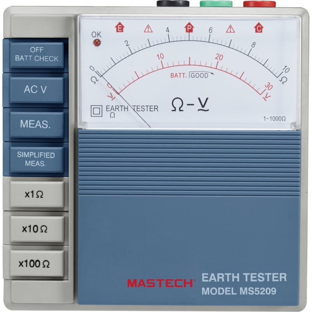 Аналоговый измеритель сопротивления заземления Mastech MS5209 00-00000285 позволяет более точно проводить необходимые измерения. Управление при помощи кнопок упрощает работу с прибором. Имеется возможность быстрой замены батареи питания без извлечения измерителя из транспортировочного футляра.