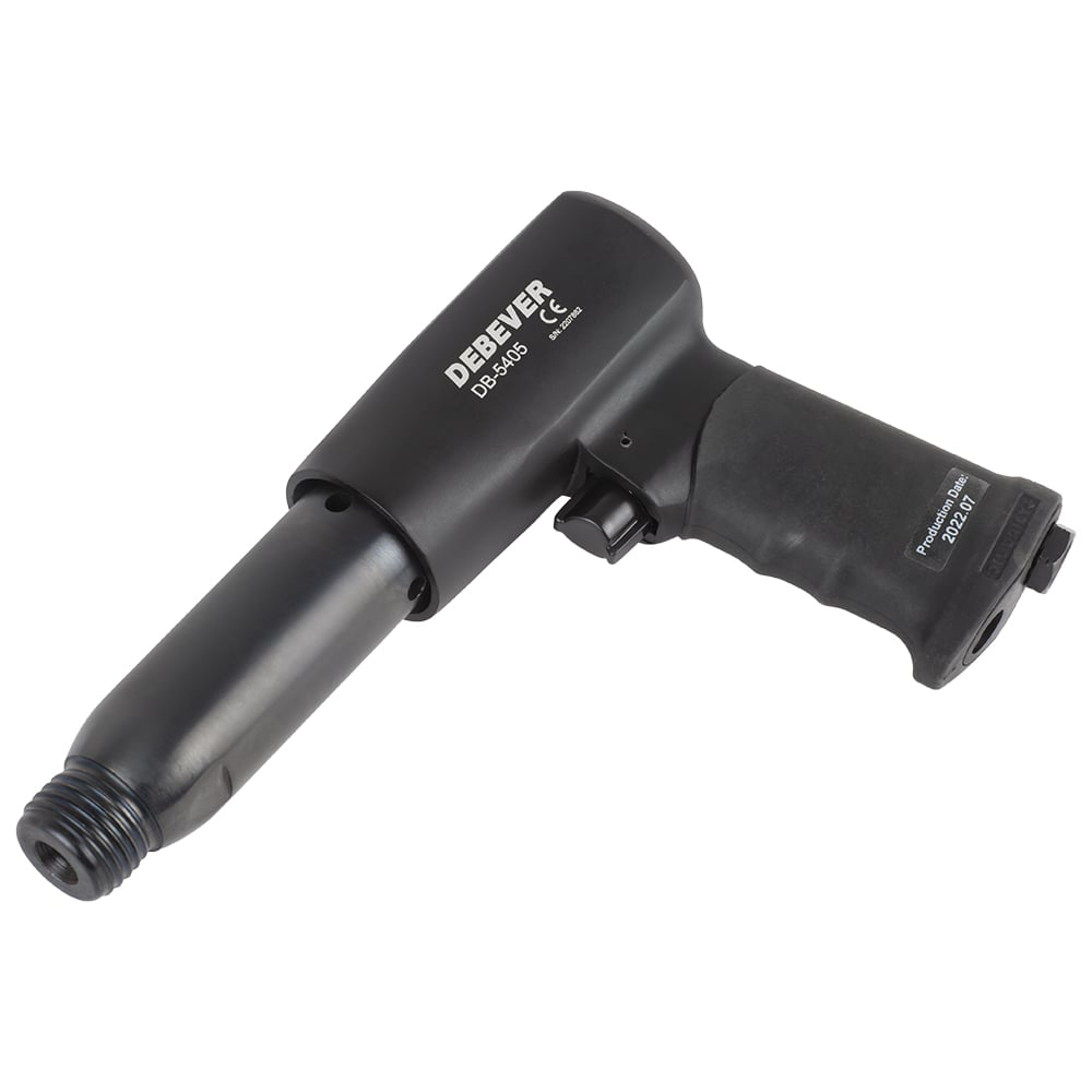 Пневматический молоток DEBEVER DB-5405 с четырьмя пиками предназначен для выполнения ударных, режущих и рубящих работ, например, удаления заклепок, снятия слоя старого покрытия или штробления. Рабочий ход составляет 92 мм, что позволяет добиться значительной силы ударов и высокой производительности.