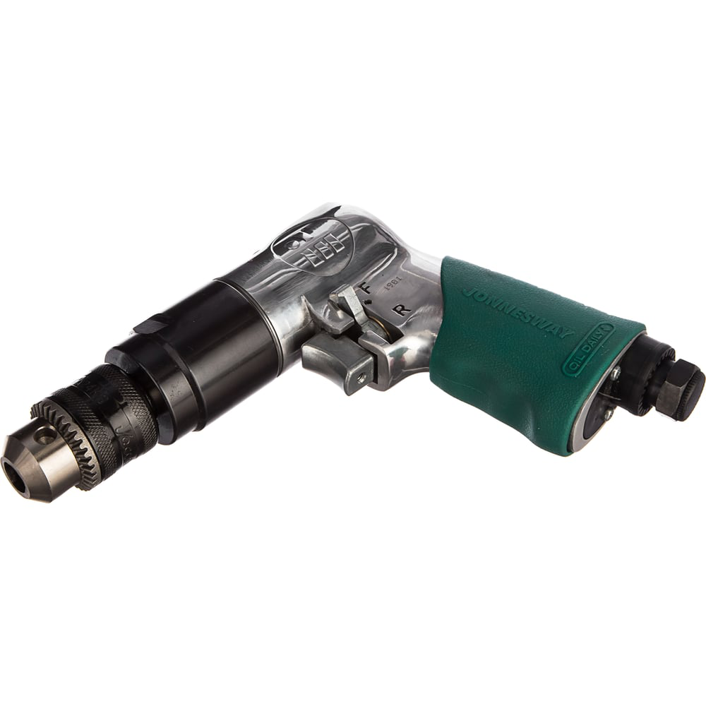 Пневматическая дрель с реверсом Jonnesway 2500 об/мин., патрон 1-10 мм JAD-6234 47105 - это инструмент профессионального класса, пригодный для выполнения работ на производстве или в различных мастерских. Область применения - выполнение сверлильных работ. Дрель оснащена надежным ключевым трехкулачковым патроном, благодаря которому возможно использование сверл различных диаметров (от 2,5 до 10 миллиметров). Габариты данной модели следующие: 165х150 мм. Изделие снабжается переключателем направления вращения.