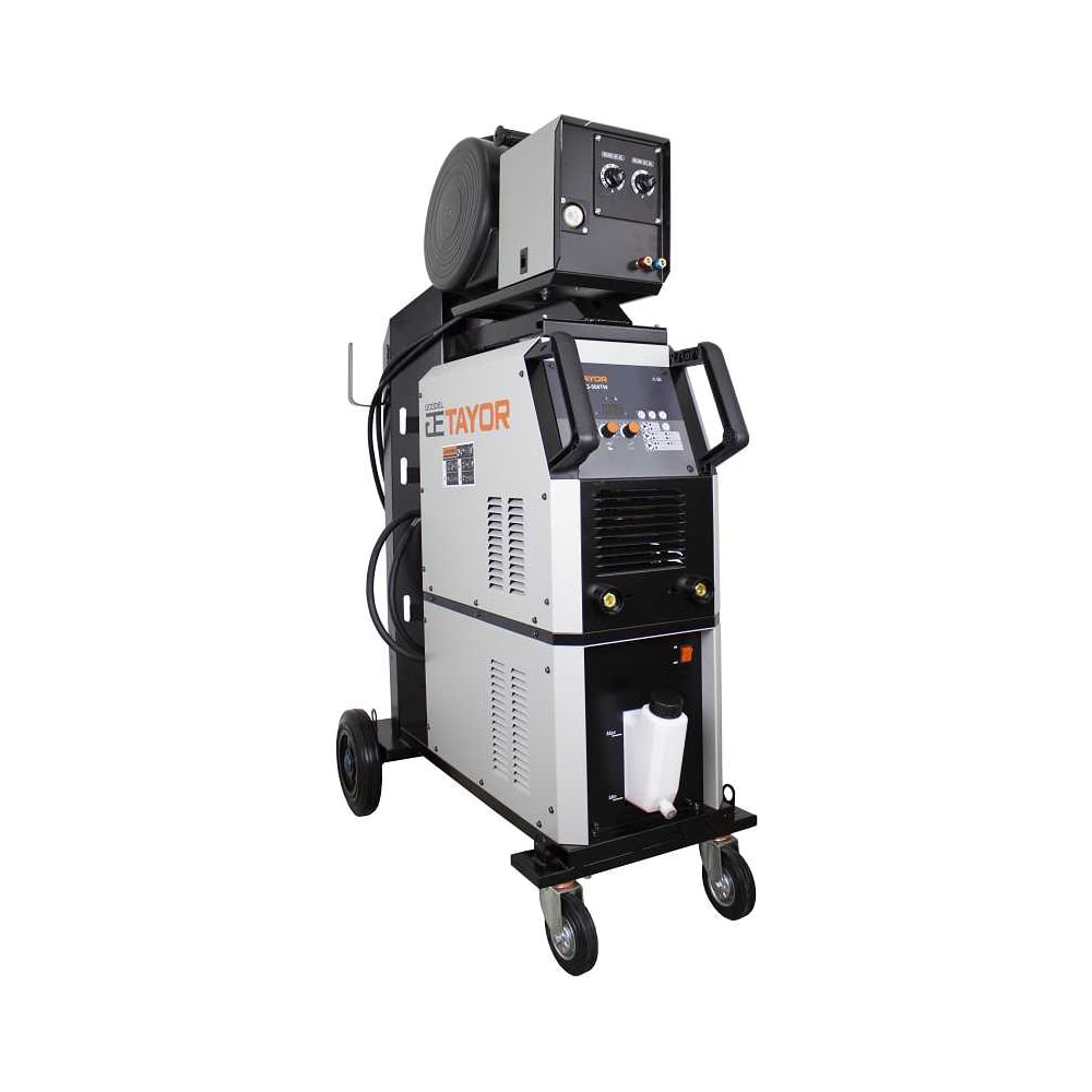 PRO MIG-500TW – промышленный сварочный полуавтомат для производительной и высококачественной сварки в среде защитных газов (MIG/MAG) сплошной и порошковой проволоками сечением от 0,8 до 1,6 мм, а также ручной дуговой сварки (ММА) покрытыми электродами любых диаметров. Система жидкостного охлаждения, устойчивость к колебаниям напряжения и высокая степень защиты гарантирует непрерывную работу даже в тяжелых производственных условиях и на высоких токах. Силовой блок на транспортировочной тележке, оборудованной площадкой под газовый баллон, работает в паре с компактным и надежным 4-х роликовым подающим устройством, что позволяет значительно расширить радиус рабочей зоны и повышает удобство выполнения сварочных работ. При необходимости расстояние между подающим устройством и источником может быть увеличено до 30 метров. Простое и интуитивно понятное управление, надежная система охлаждения и наличие 2Т/4Т режимов работы горелки обеспечивают высокую производительность при формировании коротких и длинных сварочных швов, а максимальный сварочный ток до 500 А позволяет использовать аппарат для воздушно-дуговой строжки. Плавная регулировка основных параметров и широкий диапазон выбора диаметров сварочных проволок делают аппарат универсальным для применения в различных отраслях промышлености.