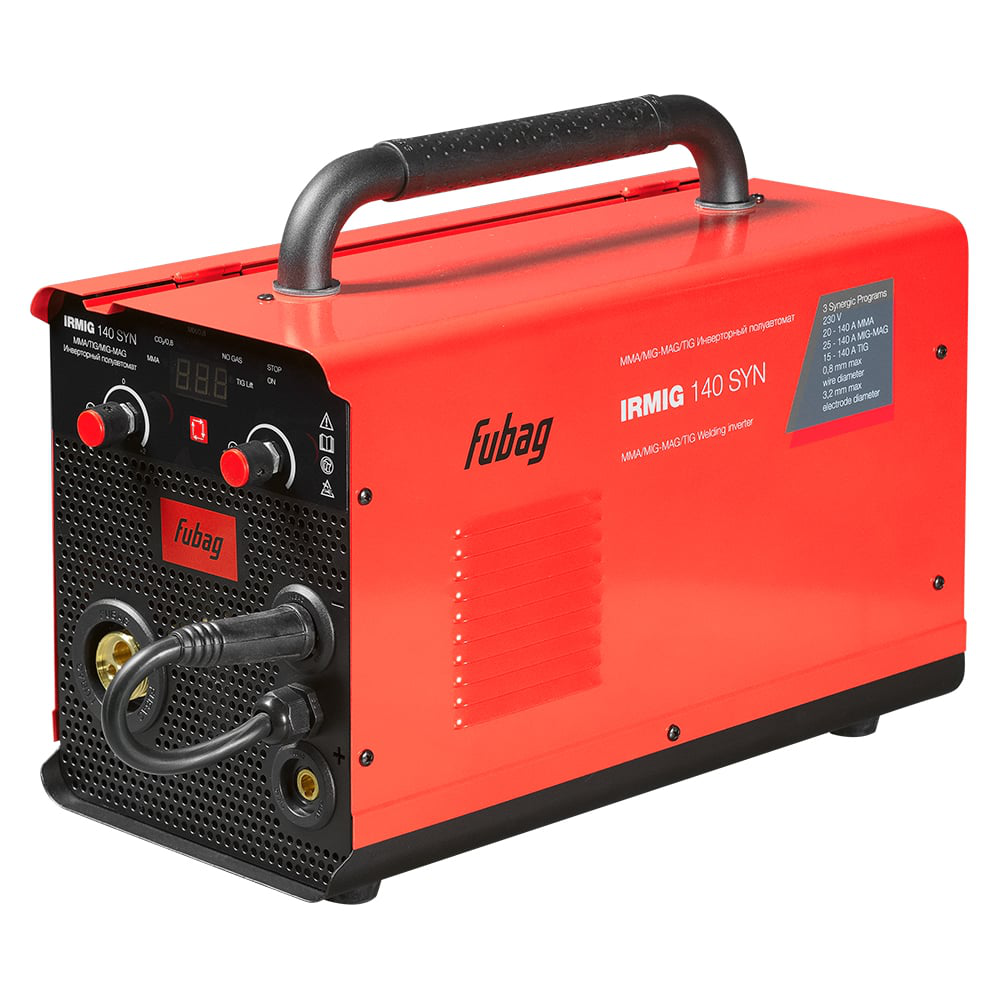 Сварочный полуавтомат инвертор FUBAG irmig 140 syn с горелкой 150а в комплекте – универсальный сварочный аппарат, работающий в режимах MIG-MAG, MMA и TIG сварки в самом распространенном диапазоне сварочного тока 15 - 140 А. Аппарат работает с проволокой диаметром 0,8 мм на катушке весом 5 кг и диаметром 200 мм. Аппарат получил новый запатентованный дизайн - все пластиковые элементы (панель, ручка для переноски) заменены на металлические, что дополнительно повышает надежность и срок службы аппарата.Регулировка подачи проволоки, сварочного напряжения и индуктивности позволяет настроить оптимальный режим сварки. Передняя панель аппарата снабжена 2 ручками: одна отвечает за регулировку тока сварки и скорость подачи проволоки; вторая – за управление выходным напряжением, что позволяет быстро и просто выбирать режимы и оптимальные параметры сварки. Полуавтомат оснащен евроразъемом для быстрого и безопасного подключения сварочной горелки. Разъем ММА – DX25.Полуавтомат имеет возможность легкой смены полярности для работы с самозащитной проволокой. Эффективная система охлаждения, а также встроенная функция термозащиты с индикацией перегрева гарантируют долговечность и надежность использования аппарата в условиях интенсивной эксплуатации. Быстрое подключение сварочных кабелей и евроразъем для подключения горелки гарантируют удобство использования.Все технические характеристики наглядно указаны на корпусе аппарата, поставляется с полным набором аксессуаров для MIG/MAG, ММА и TIG сварки.