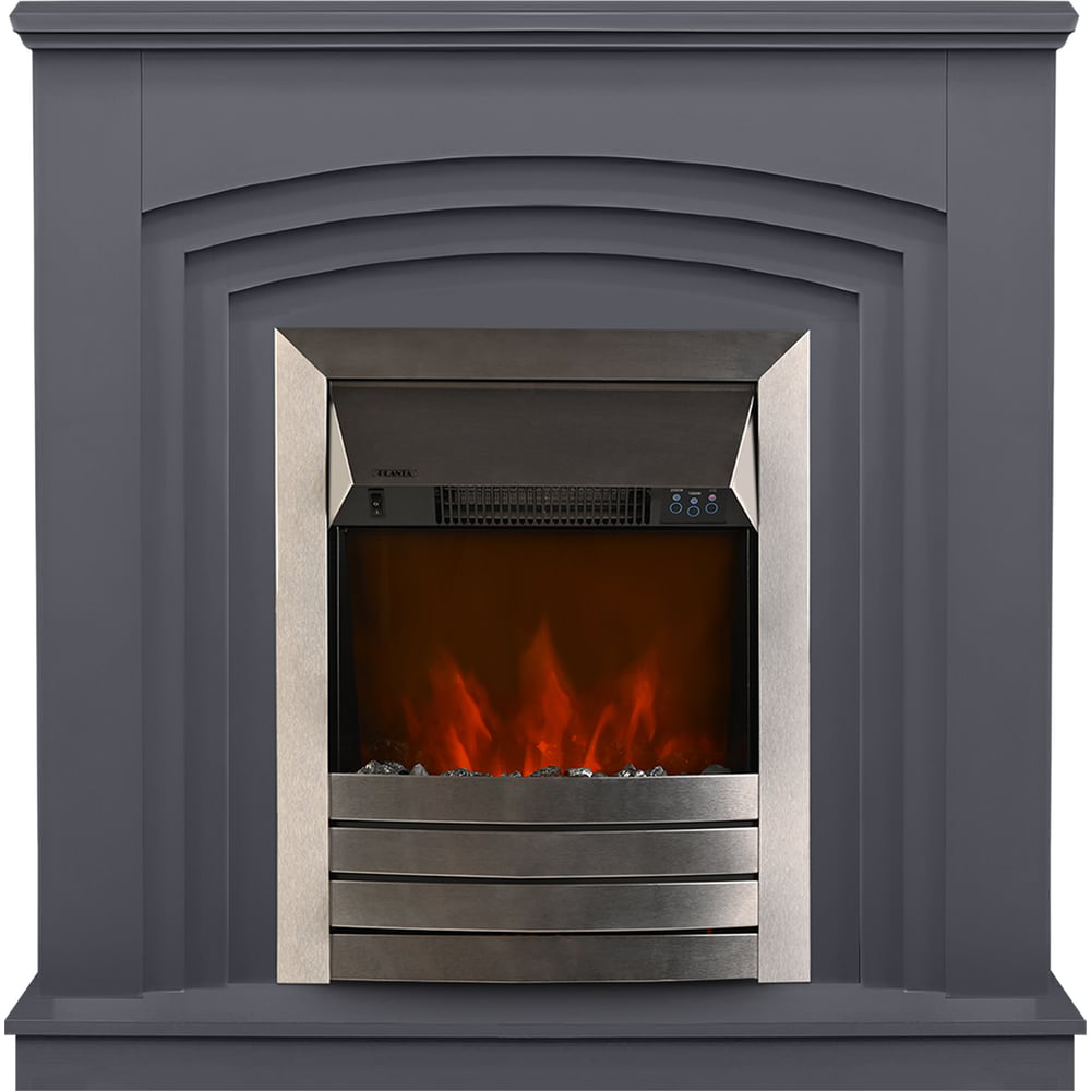 Стильный и современный портал для камина декоративный изготовлен из ламинированного ДСП в цвете графит. Данный каминокомплект с порталом и камином идеально подойдёт под любой дизайн интерьера – от классического до в стиле хай-тек. Компактные размеры портала (Ш*В*Г: 98*98,2*35 см) Портал для электрического камина поставляется в разборном виде, собрать его не составит труда, так как в комплект поставки входит подробная инструкция по сборке, а также вся необходимая фурнитура. Каминокомплект укомплектован электроочагом PLANTA PFP-FS600-silver, одно из главных достоинств которого заключается в том, что данный электрокамин можно встроить в портал, а также использовать как отдельностоящий камин. Электрический камин полностью подобен настоящему, имеет 5 уровней яркости пламени Real Flame и звук потрескивания дров. Камин имеет три режима работы: режим имитации пламени 5Вт без обогрева, режим имитации пламени+обогрев 1000 Вт и режим имитации пламени+обогрев 2000 Вт. Также имеется таймер включения и выключения. Декоративный камин согреет ваш дом и подарит тепло, как от настоящего огня. PLANTA PFP-FS600-silver обеспечивает быстрый нагрев помещения до 25 кв.м. В комплекте идет два вида декоративного топлива - уголь и камни. В электрокамине предусмотрена защита от перегрева. В комплекте есть пульт для дистанционного управления камином, также имеется панель управления на корпусе.