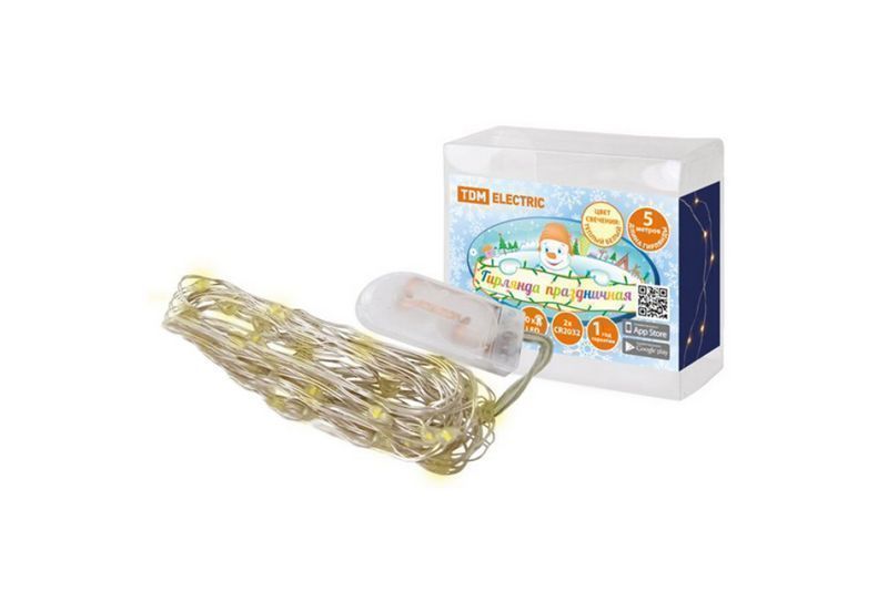 Для питания гирлянды используются две батарейки CR2032, которые обеспечивают длительное время работы без необходимости подключения к электросети.