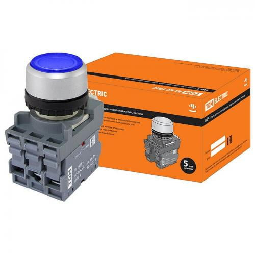 Кнопка TDM MP1-21L(LED) (в сборе; диаметр 22 мм; 24В; 1з+1р; синяя) SQ0747-0020 - это надежное и стильное решение для вашего электрического оборудования, которое обеспечит удобство использования и долгий срок службы.