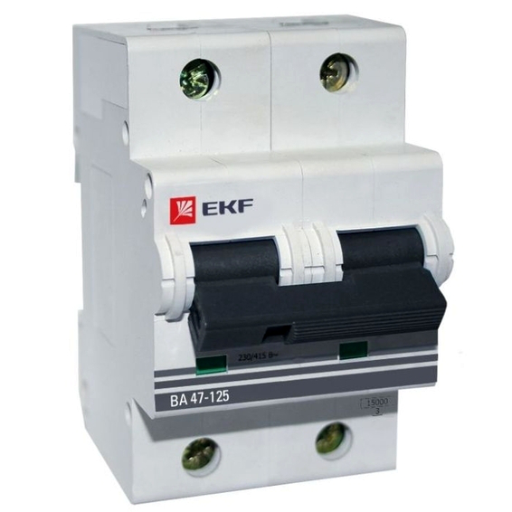 Автоматические выключатели ВА 47-125 EKF PROxima благодаря высокой предельной коммутационной способности 15 кА могут использоваться вместо силовых автоматических выключателей. Выключатели имеют ширину корпуса 1,5 модуля (27 мм), производятся с номинальными токами до 125 А. Для надежного гашения дуги используется двойной разрыв контактов и две дугогасительные камеры. Оптимальная токопроводимость обеспечивается серебросодержащей контактной группой.