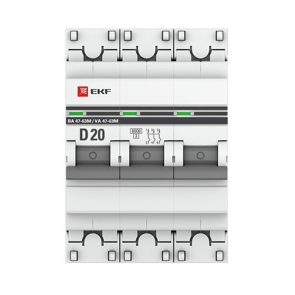 ОБНОВЛЕНИЕ ЛИНЕЙКИ PROXIMA Артикул аналог: M63MA6320D Автоматические выключатели ВА 47-63М без теплового расцепителя 6 кА EKF PROxima являются механическими коммутационными аппаратами и соответствуют ГОСТ Р 50345-2010. Особенностью данной серии выключателей является усовершенствованная конструкция. В выключателях имеются пластиковые крышки, закрывающие доступ к винтовому зажиму и служащие для опломбирования выключателей, что исключает несанкционированный доступ к проводникам. Корпус выключателей усилен дополнительными заклепками для устранения эффекта расхождения корпуса. Выключатели оборудованы удобной ручкой управления, обеспечивающей надежное оперирование изделиями. На лицевой панели выключателей имеется цветовой индикатор состояния. Конструкция установочного зажима обеспечивает свободную установку выключателя на DIN-рейку. Возможна коммутация алюминиевым и медным проводом.