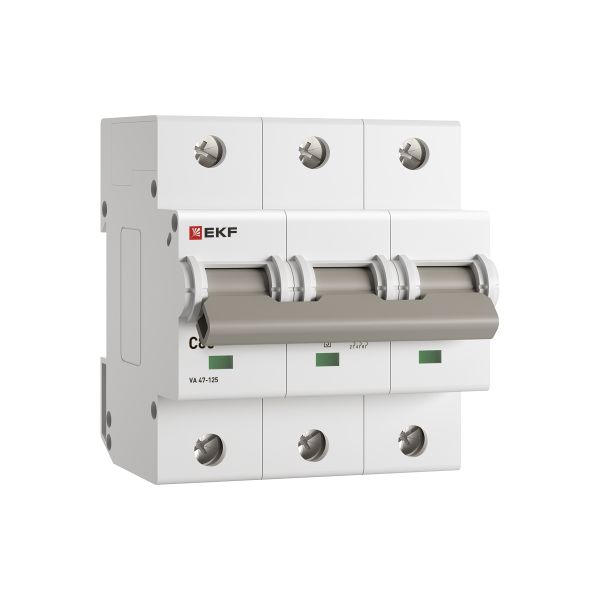 Автоматические выключатели ВА 47-125 EKF PROxima благодаря высокой предельной коммутационной способности 15 кА могут использоваться вместо силовых автоматических выключателей. Выключатели имеют ширину корпуса 1,5 модуля (27 мм), производятся с номинальными токами до 125 А. Для надежного гашения дуги используется двойной разрыв контактов и две дугогасительные камеры. Оптимальная токопроводимость обеспечивается серебросодержащей контактной группой.