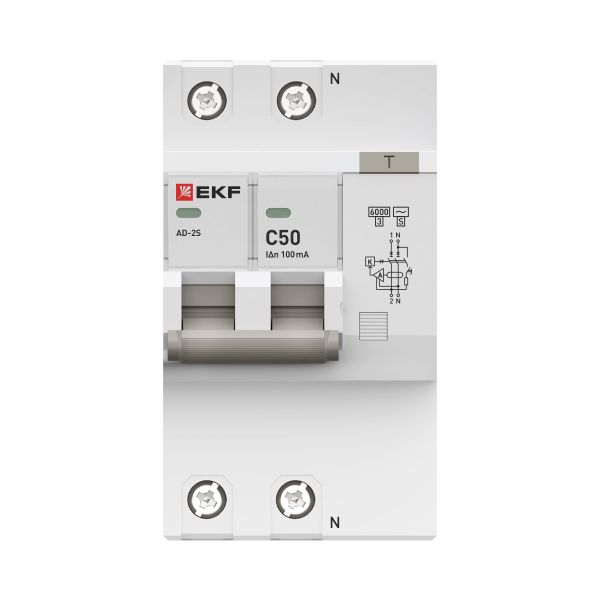 Дифференциальный автоматический выключатель АД-2(4) (S) EKF PROxima представляет собой аппарат, сочетающий функции автоматического выключателя с устройством защитного отключения. При обнаружении автоматическим выключателем в защищаемом участке сети тока утечки (повреждения) на землю или сверхтока (тока перегрузки или короткого замыкания) происходит срабатывание устройства, приводящее к отключению защищаемой сети. Особое отличие дифференциальных автоматов EKF – в наличии встроенного блока защиты от перенапряжения. АД-2 и АД-4 EKF PROxima выпускаются в стандартном и селективном (АД-2S, АД-4S) исполнениях.