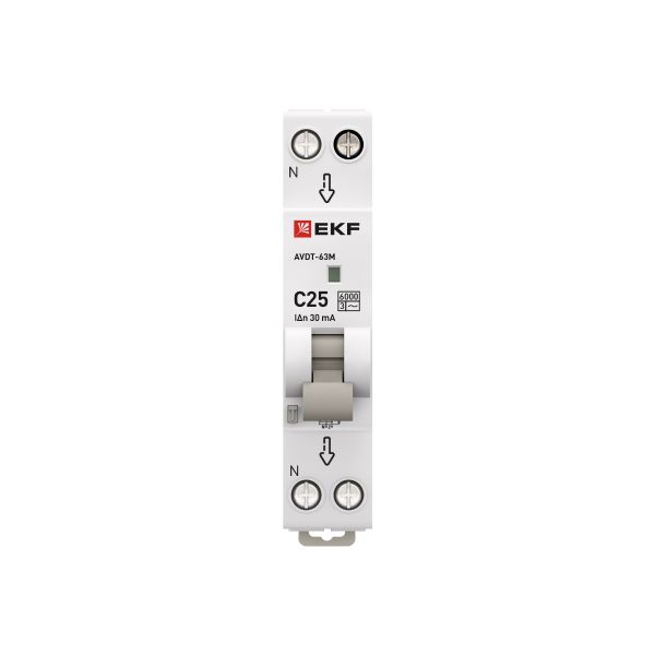 В нашем магазине «Главэлектрика» в Хабаровске, вы можете приобрести товар: «Автоматический выключатель дифференциального тока АВДТ-63М 1P+N 18мм 25А характеристика С 30мА тип AС электронный 6кА PROXIMA EKF» с доставкой по г. Хабаровск.