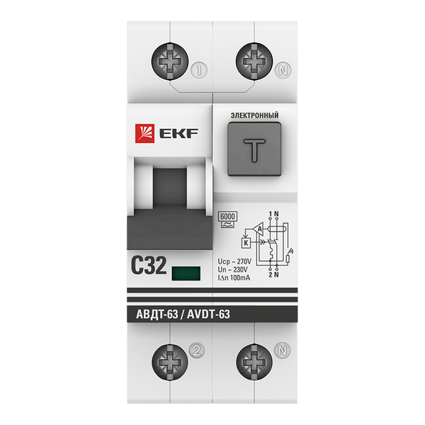 ОБНОВЛЕНИЕ ЛИНЕЙКИ PROXIMA Артикул аналог: D63N26EA32C100 Автоматический выключатель дифференциального тока АВДТ-63 EKF PROxima представляет аппарат, сочетающий функции автоматического выключателя с электромеханическим или электронным УЗО. При обнаружении автоматическим выключателем в защищаемом участке сети тока утечки (повреждения) на землю или сверхтока (тока перегрузки или короткого замыкания) происходит срабатывание устройства, приводящее к отключению защищаемой сети. Возможна коммутация алюминиевым и медным проводником. Автоматический выключатель дифференциального тока малогабаритный АВДТ-63М EKF PROxima представляет аппарат, сочетающий функции автоматического выключателя с электронным УЗО типа АС в компактном корпусе шириной один модуль. При обнаружении автоматическим выключателем на защищаемом участке сети тока утечки (повреждения) на землю или сверхтока (тока перегрузки или короткого замыкания) происходит срабатывание устройства, приводящее к отключению защищаемой сети. Особое отличие дифференциальных автоматических выключателей EKF с электронным УЗО – в наличии блока защиты от перенапряжения. Возможна коммутация алюминиевым и медным проводом.