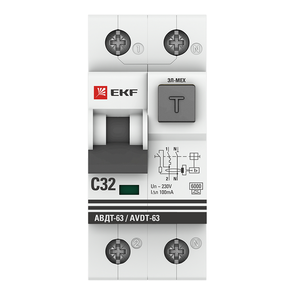 ОБНОВЛЕНИЕ ЛИНЕЙКИ PROXIMA Артикул аналог: D63N26MA32C100 Автоматический выключатель дифференциального тока АВДТ-63 EKF PROxima представляет аппарат, сочетающий функции автоматического выключателя с электромеханическим или электронным УЗО. При обнаружении автоматическим выключателем в защищаемом участке сети тока утечки (повреждения) на землю или сверхтока (тока перегрузки или короткого замыкания) происходит срабатывание устройства, приводящее к отключению защищаемой сети. Возможна коммутация алюминиевым и медным проводником. Автоматический выключатель дифференциального тока малогабаритный АВДТ-63М EKF PROxima представляет аппарат, сочетающий функции автоматического выключателя с электронным УЗО типа АС в компактном корпусе шириной один модуль. При обнаружении автоматическим выключателем на защищаемом участке сети тока утечки (повреждения) на землю или сверхтока (тока перегрузки или короткого замыкания) происходит срабатывание устройства, приводящее к отключению защищаемой сети. Особое отличие дифференциальных автоматических выключателей EKF с электронным УЗО – в наличии блока защиты от перенапряжения. Возможна коммутация алюминиевым и медным проводом.