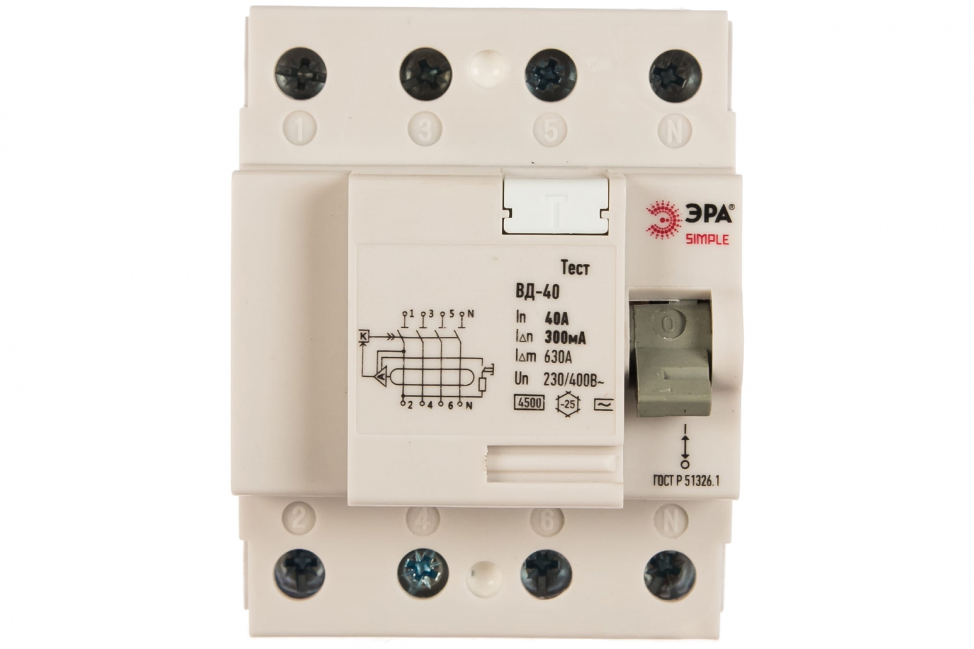 УЗО ЭРА SIMPLE ВД-40 4P 40А/300мА электронное Б0039273 - надежная защита для электрических сетей